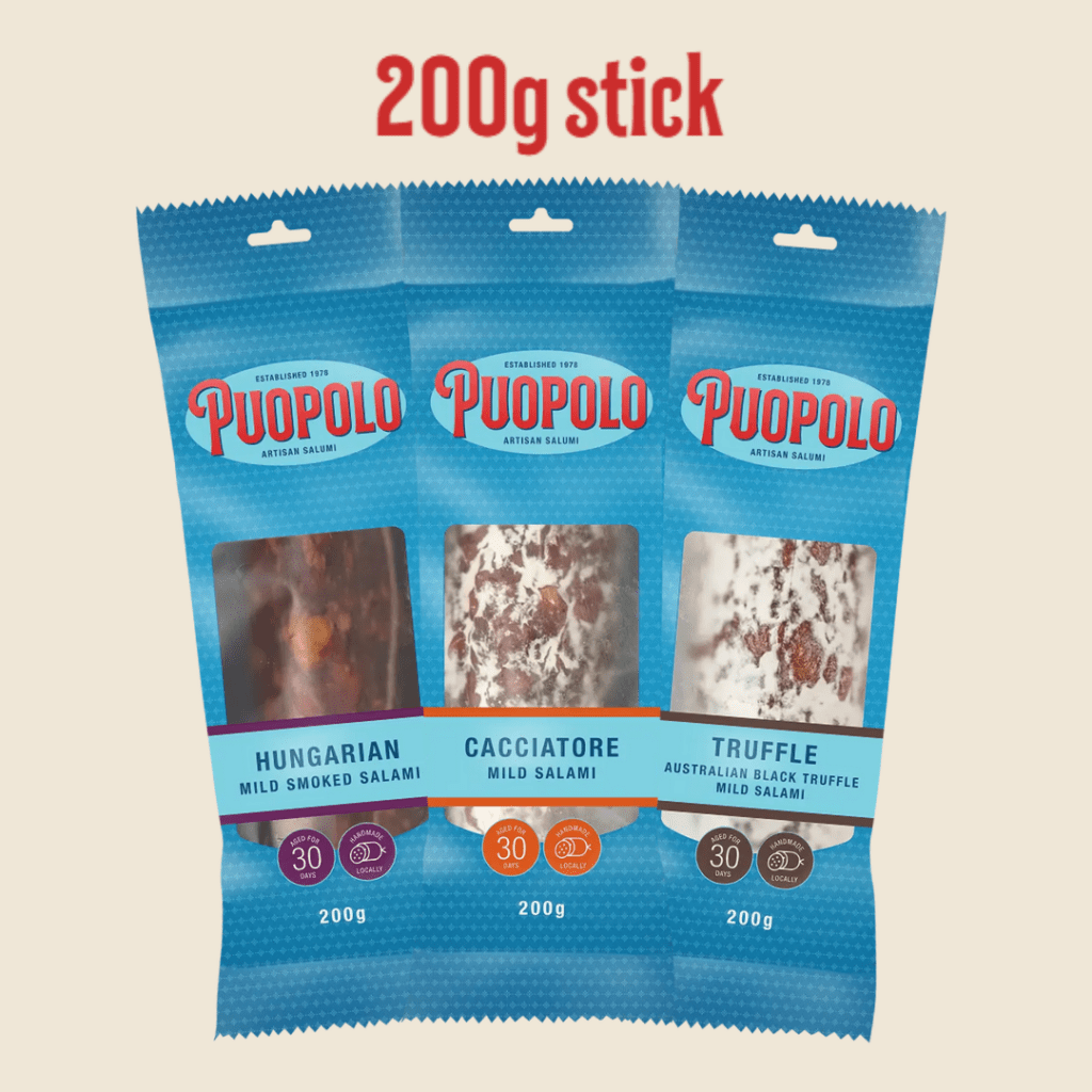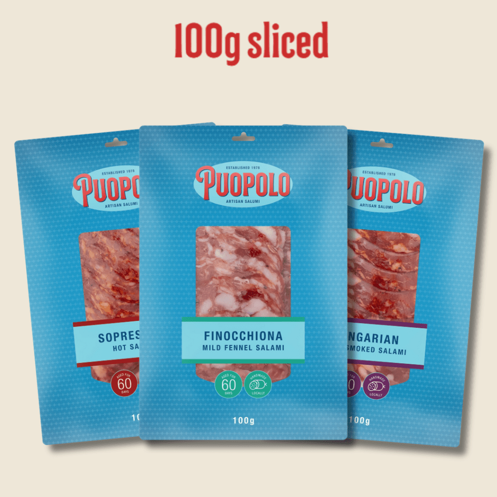 Puopolo begins with traditional recipes and quality ingredients — the foundations of great salami and cured meats. The final and most crucial step is carefully dry-ageing each product, a process that captures the authentic flavour and quality of their original Italian recipes.